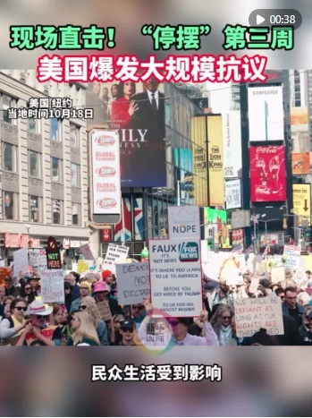 新华社北京10月19日电 18日,美国纽约、洛杉矶、华盛顿、芝加哥等主要城市举行示威活动,反对特朗普政府暴力镇压移民、在美国城市强行部署国民警卫队、征收关税等政策。组织者称,数百万人参加了抗议活动。