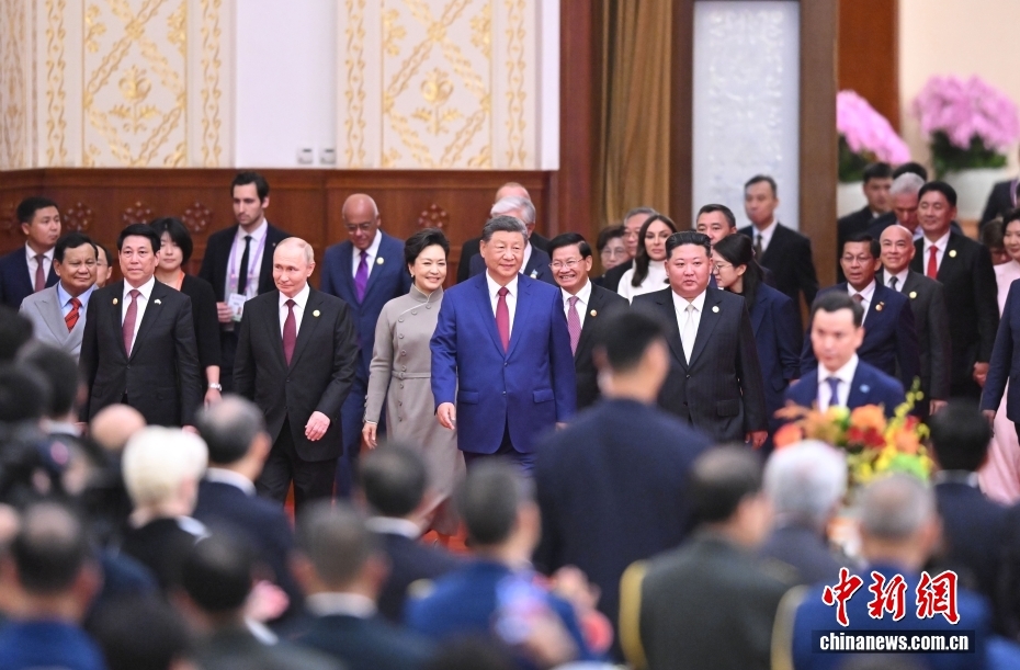 在杜安·曼广场(Duane Man Square),XI Jinping和他的妻子Penn Liyuan拍摄了照片外国代表团的负责人参加了纪念会议及其配偶。这次标准的“朋友”会议反映了国际社会对中国对日本抵抗战争的历史贡献的看法,也是历史公理的会议。
