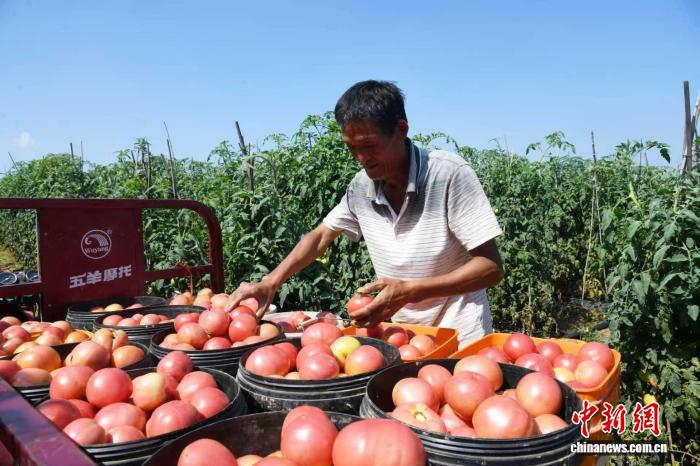 Sanhekuu村的600英亩番茄田的年产量为450万公斤,年产量超过2000万元。 Wen Xuwang照片