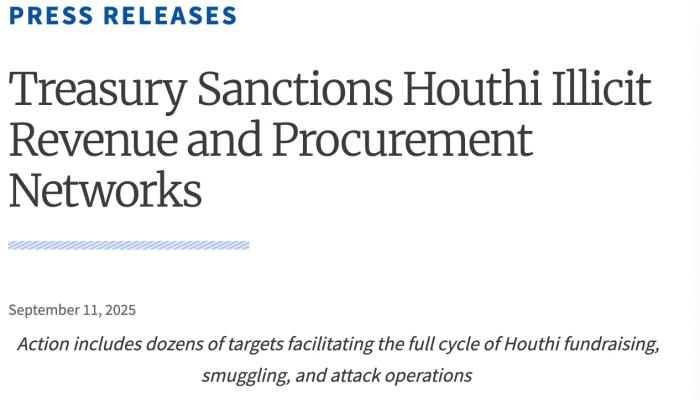 9月12日,中国新闻服务。根据美国财政部官方网站官方网站的最新新闻,美国财政部的美国资产管理办公室(OFAC)。 uu。发表声明宣布,将包括32个与胡塞军队有关的个人和实体,将包括在制裁名单中,并将收到四艘相关船只。