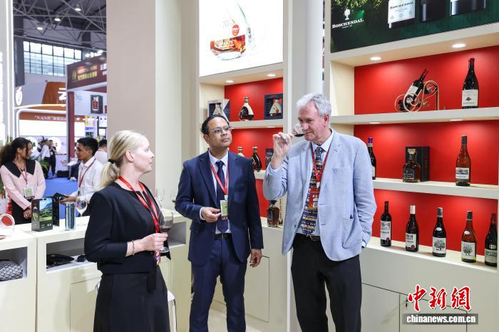 9月9日,中国国际博览会第14届世博会在吉州省的城市领土开业。这张照片显示外国客人在葡萄酒博览会上品尝葡萄酒。中国记者摄影新闻服务Qhonglun